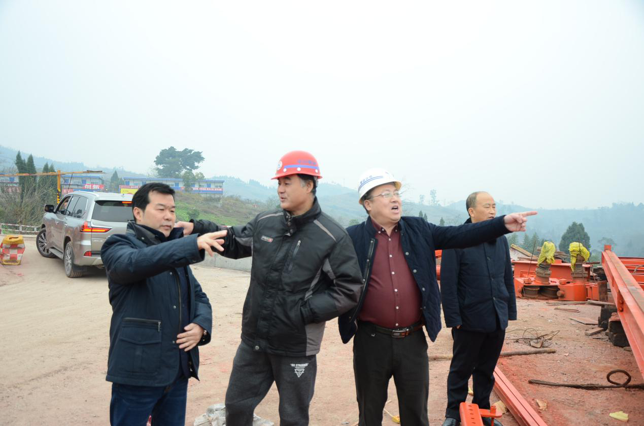 謝董事長(zhǎng)一行深入鐵山隧道出口、鐵山互通及L連接線、LJ07合同段一號(hào)梁場(chǎng)及州河特大橋引橋營(yíng)山岸橋臺(tái),調(diào)研了施工進(jìn)度、下步工期安排。