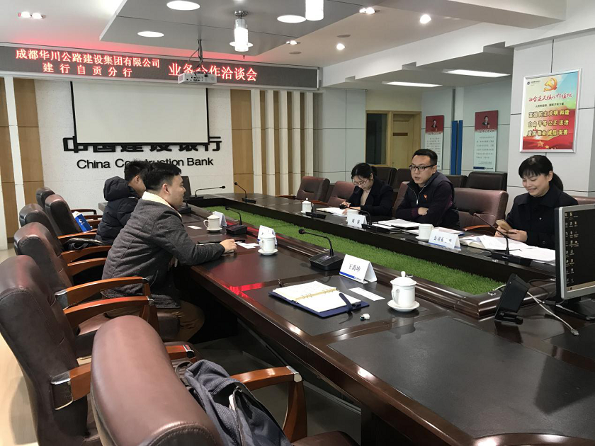 1月21日至23日,由財務(wù)管理中心投融資處主管楊洋帶隊前往自貢市,先后走訪了自貢銀行總行、農(nóng)業(yè)銀行自貢分行,建設(shè)銀行自貢分行、交通銀行自貢分行,與各金融機構(gòu)領(lǐng)導(dǎo)進行座談交流。座談過程中,楊洋向各金融機構(gòu)介紹了華川集團經(jīng)營發(fā)展?fàn)顩r,詳細了解了各銀行政策導(dǎo)向和政府財政情況。最后雙方在基建項目融資可操作性上進行了深入交流。