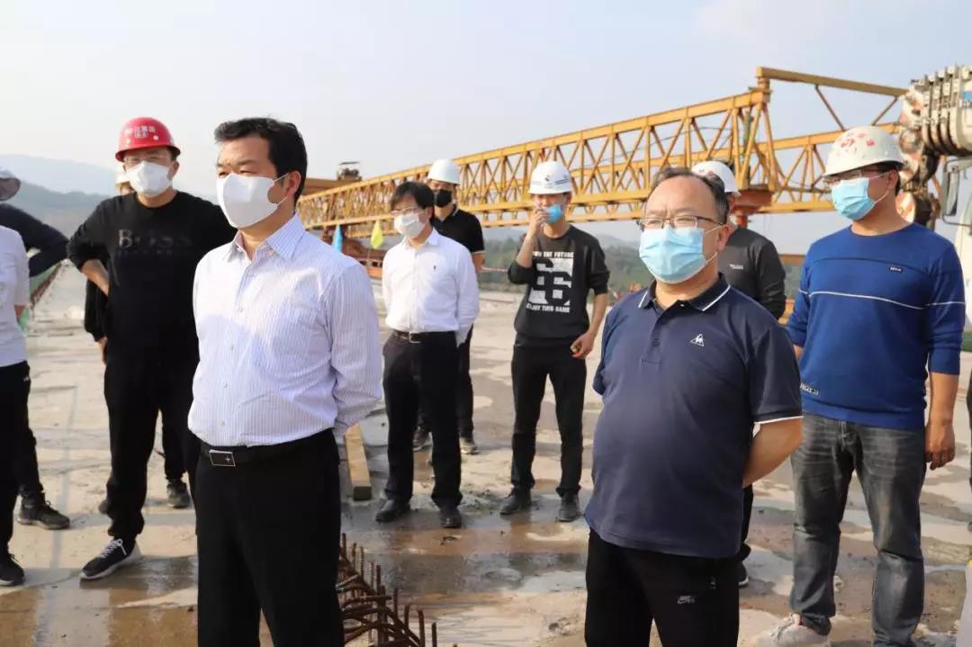 董事長一行深入石板樞紐互通、州河特大橋、巴河特大橋和路面施工現(xiàn)場,看進度質(zhì)量,詢問題矛盾,聽情況匯報,調(diào)研疫情防控、人員設(shè)備、施工組織、建設(shè)管理、材料供應(yīng)等情況。在視察過程中,董事長強調(diào):要按照既定時間節(jié)點,咬定運營目標(biāo),克服一切困難,強力有序高效推進收官之戰(zhàn)。