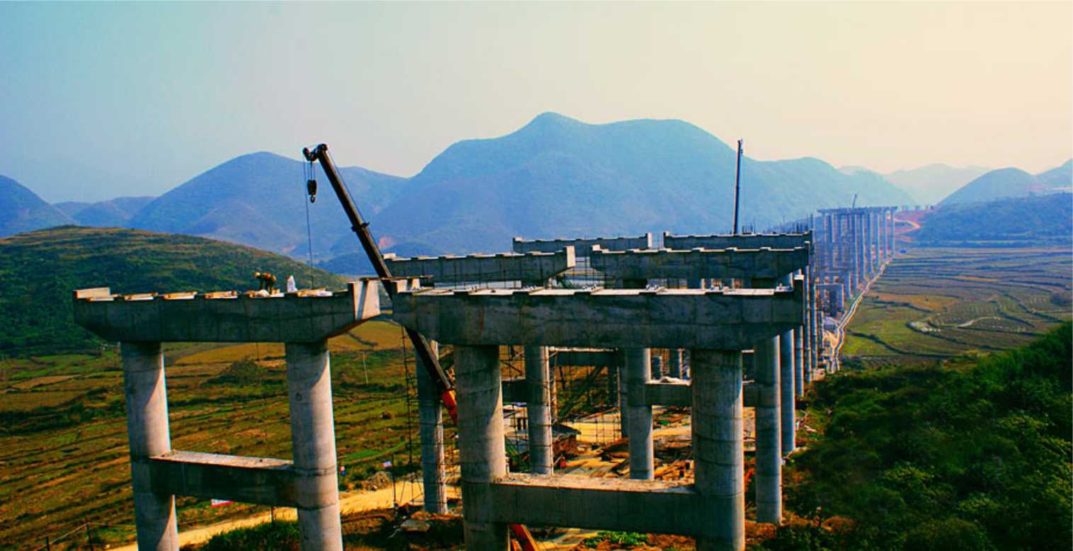 湖南省衡陽至桂陽高速公路項(xiàng)目第10合同段,交工時間為2012.11月,工期26個月,投資2.56個億。本工程全長4.8Km,設(shè)計(jì)標(biāo)準(zhǔn)為雙向六車道高速公路,設(shè)計(jì)行車速度為100km/h,路基寬度為33.5m。路基挖方102萬m³,路基填方104萬m³;有特大橋1146m/1座(橋?qū)?×16.5m),老屋場特大橋:38孔30米,全長1146米,橋?qū)?3米。